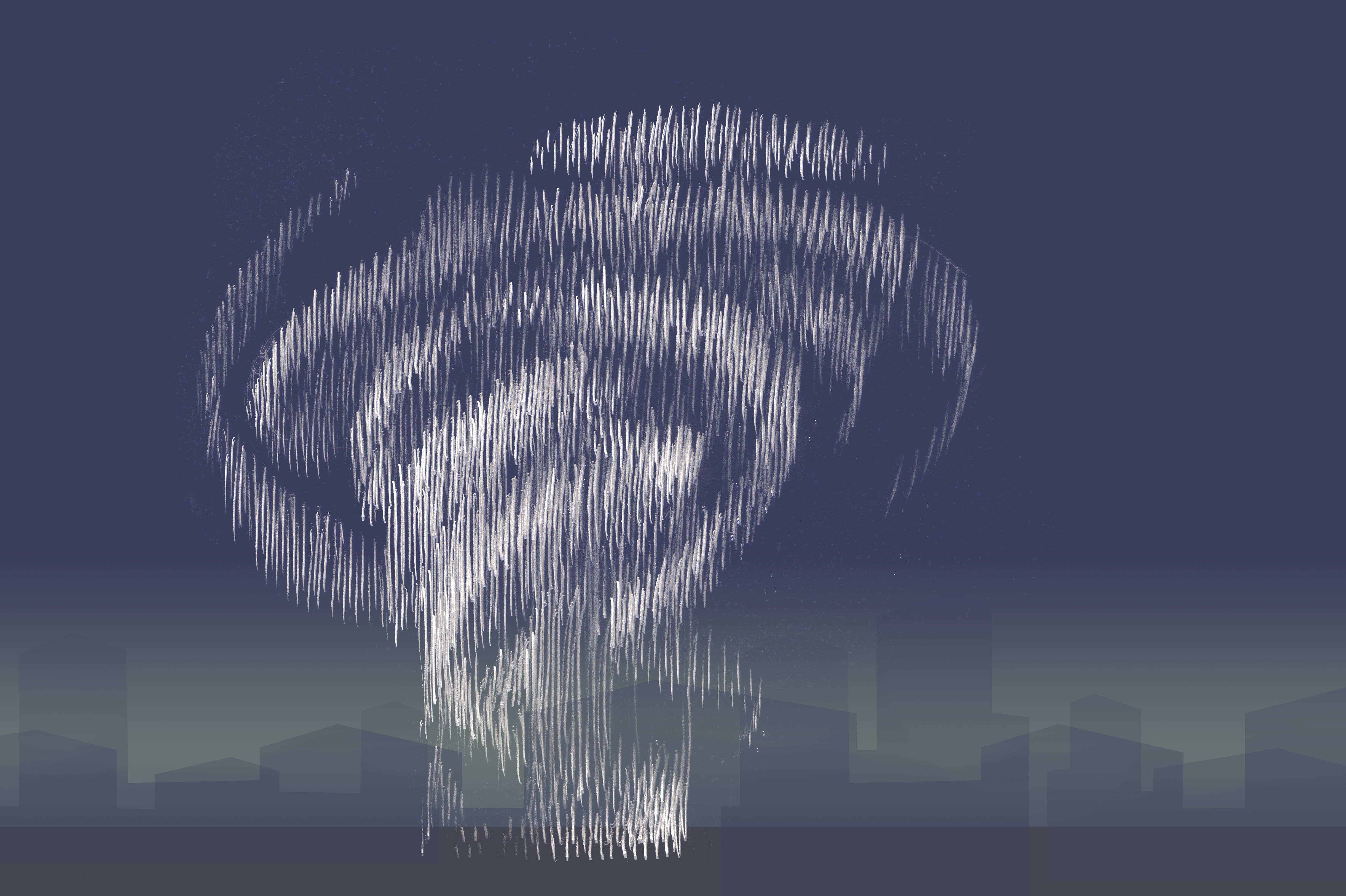 By combining the strands in different lengths a large hanging shape was formed. The many strands rustle in the wind like leaves and break the sunlight like water drops. The cloud shows a serene clearness in its tranquility and abundance. Because of its transparency it engages with its surrounding and reflects the outer world.