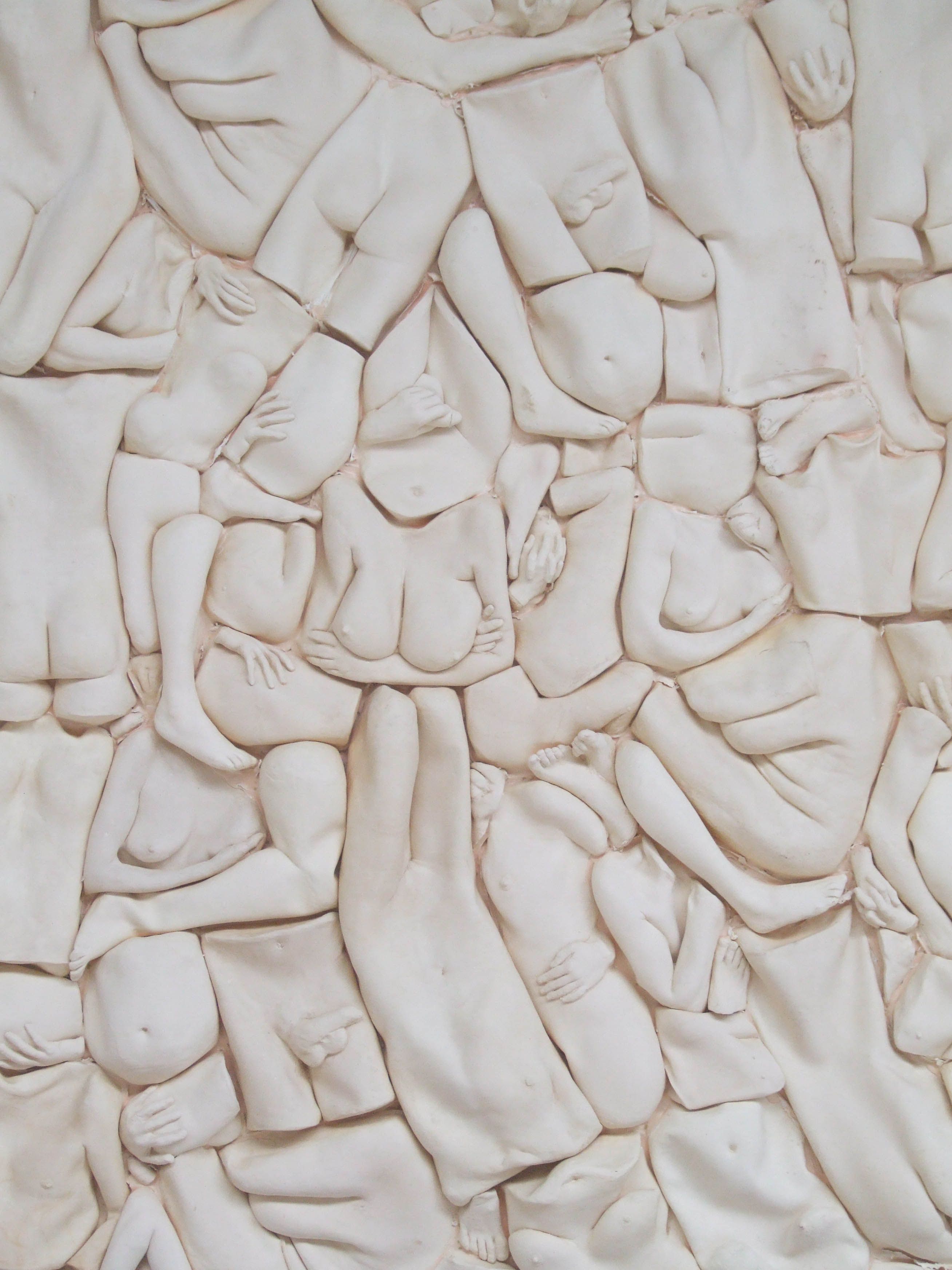 With this Latex Tapestry Marisja Smit made her debut in 2008 at Pulchri Studio, The Hague. The conclusions of an investigation into the human body, the social environment and the taming of living material. Sections of cast body parts form a composition on the wall. In a surrealistic way, this tapestry of latex reflects our society, naked. “what do you see when you look in the mirror?”