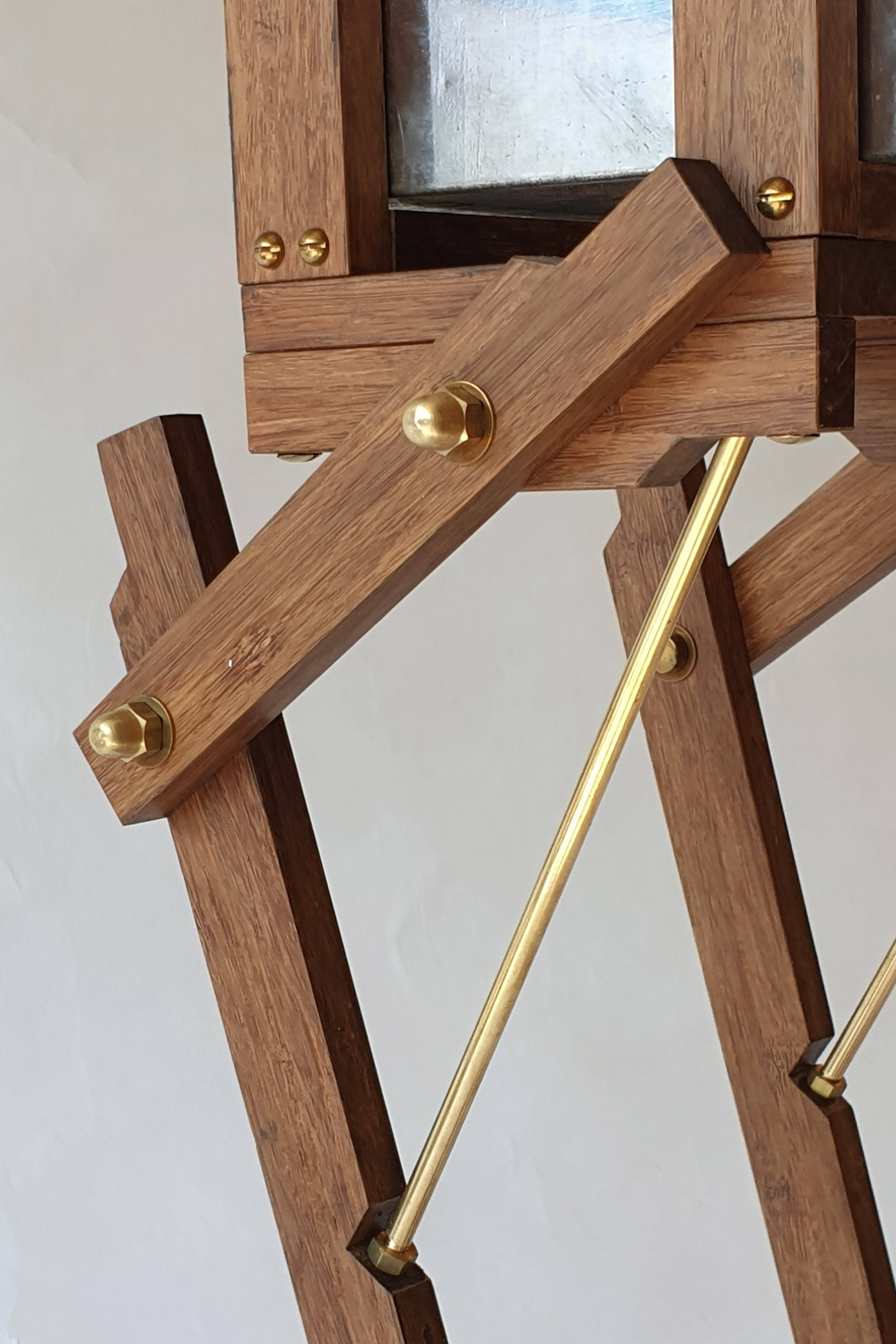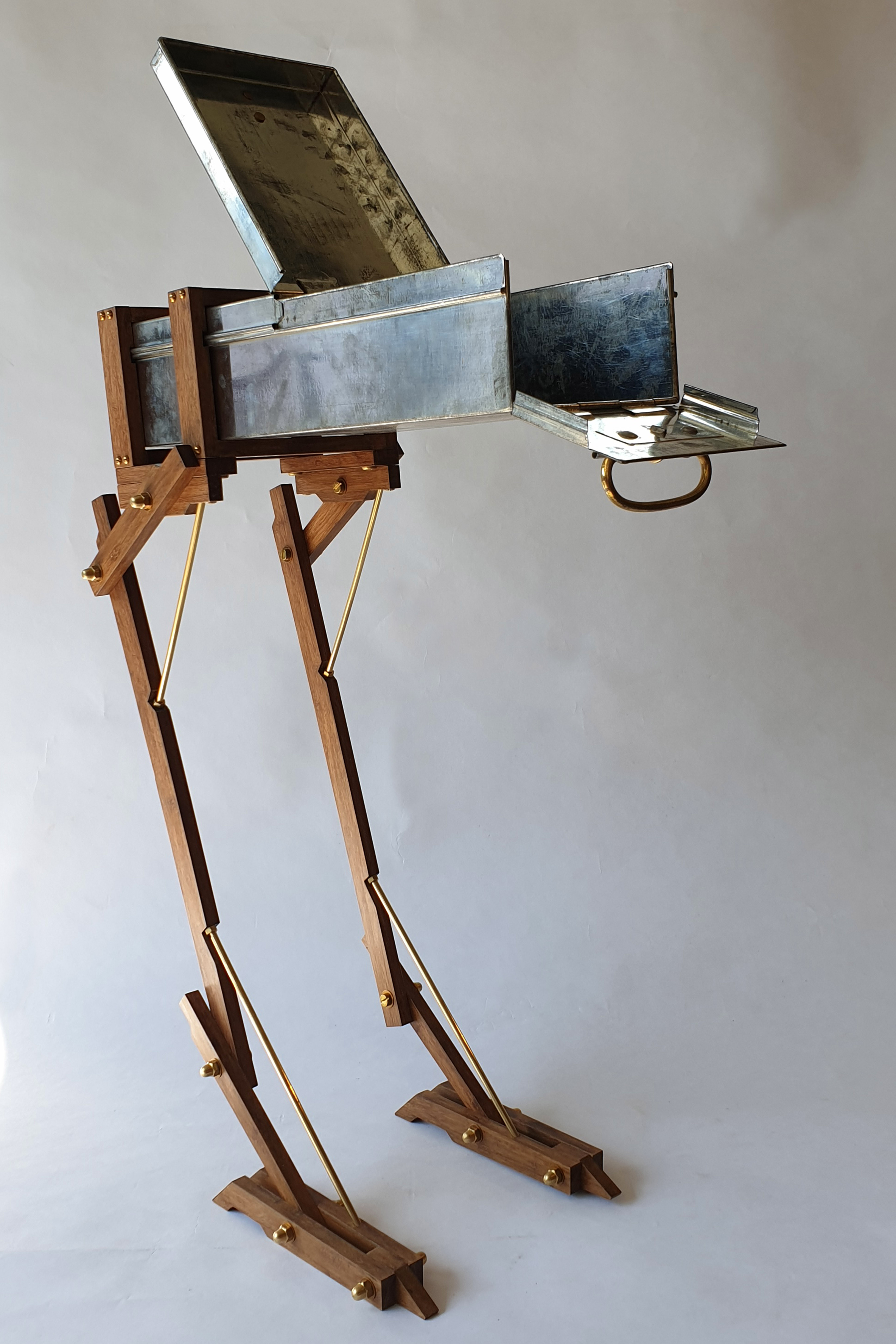Cabinet made from a modified safe box, used by ABN Amro Bank from 1950 till 2000. The wings are made of a old brass boat propellor. The legs are made of bamboo and brass. Dimension safe box: L: 43cm W: 16cm H: 9cm. Total height, including legs: 64cm. Made in 2020