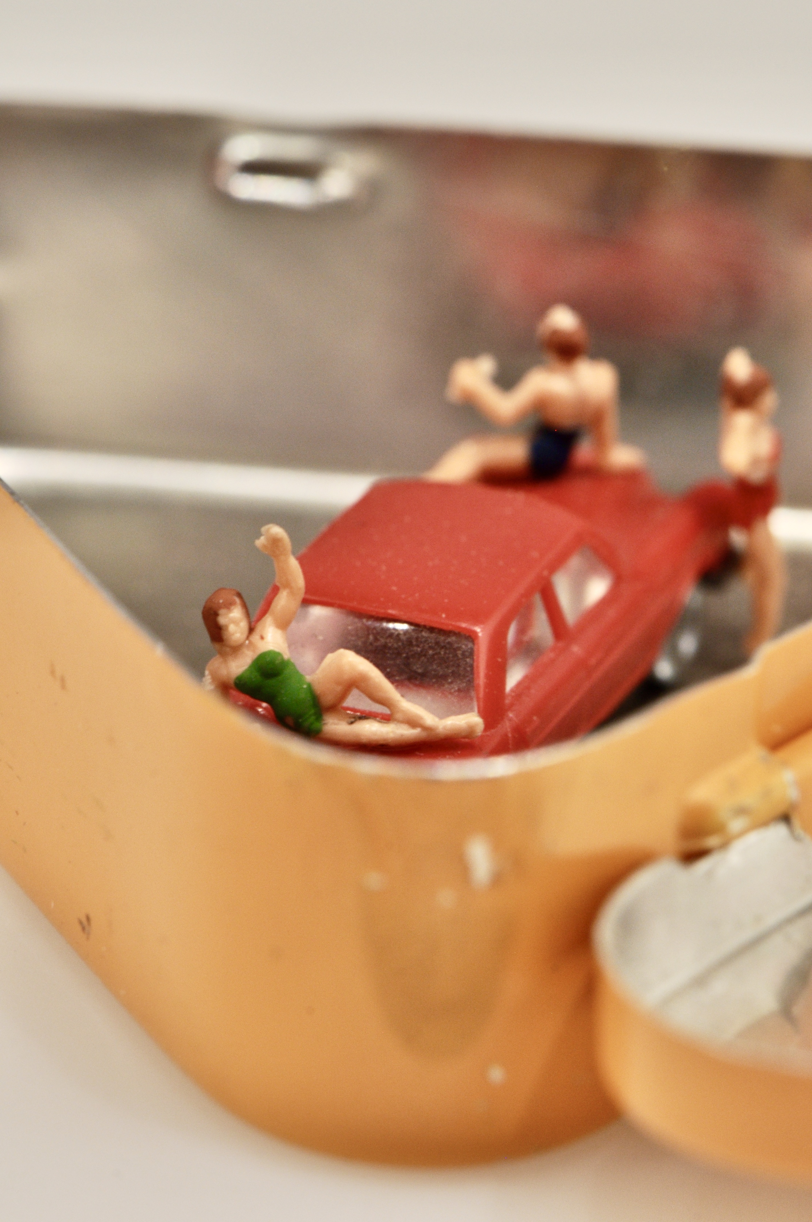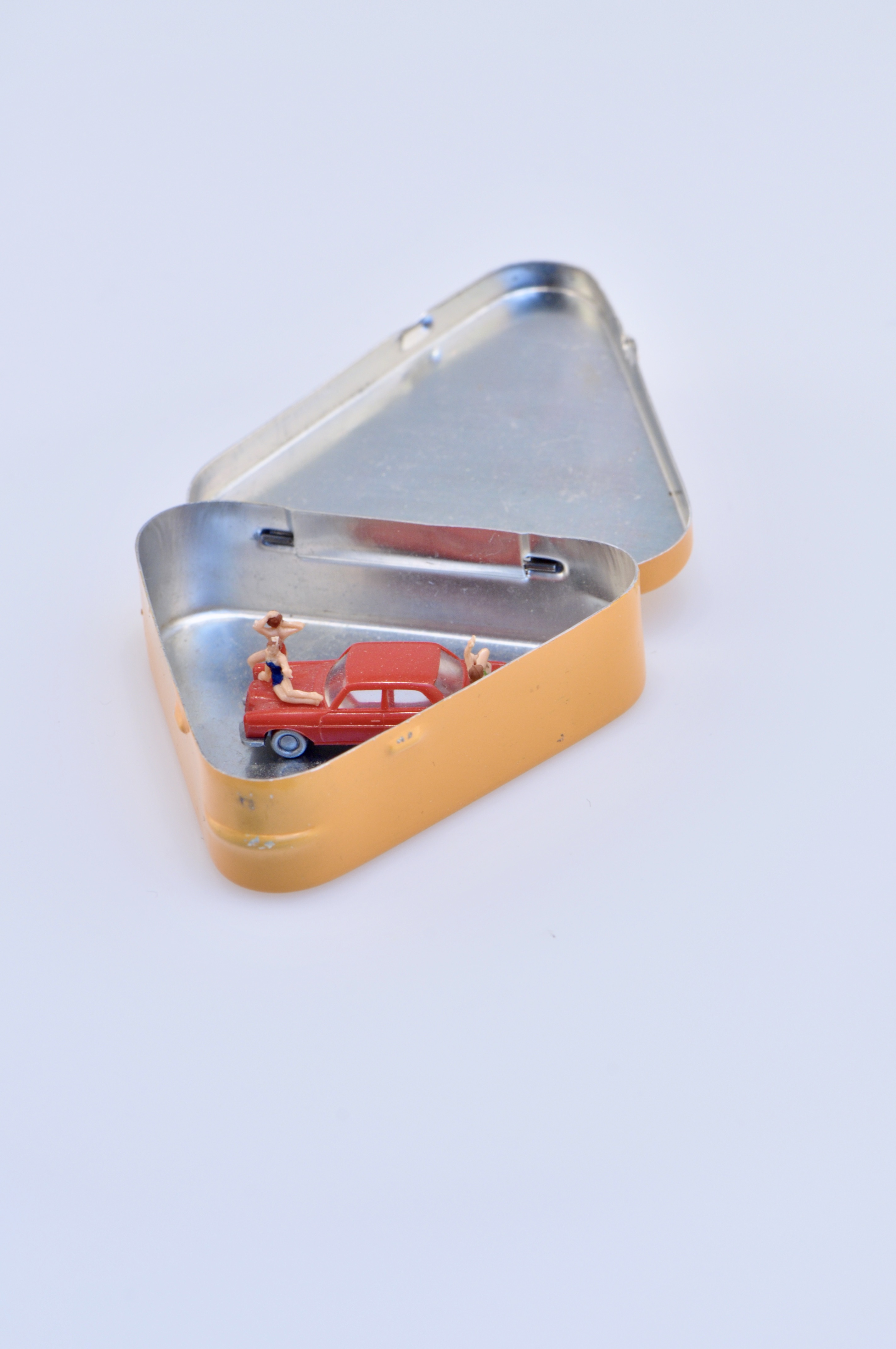 Installation in a candy box. The "Piepshows" were originally made for the art show “Illegallerie” in 2004. Three artists reacted to the concept “illegal”.