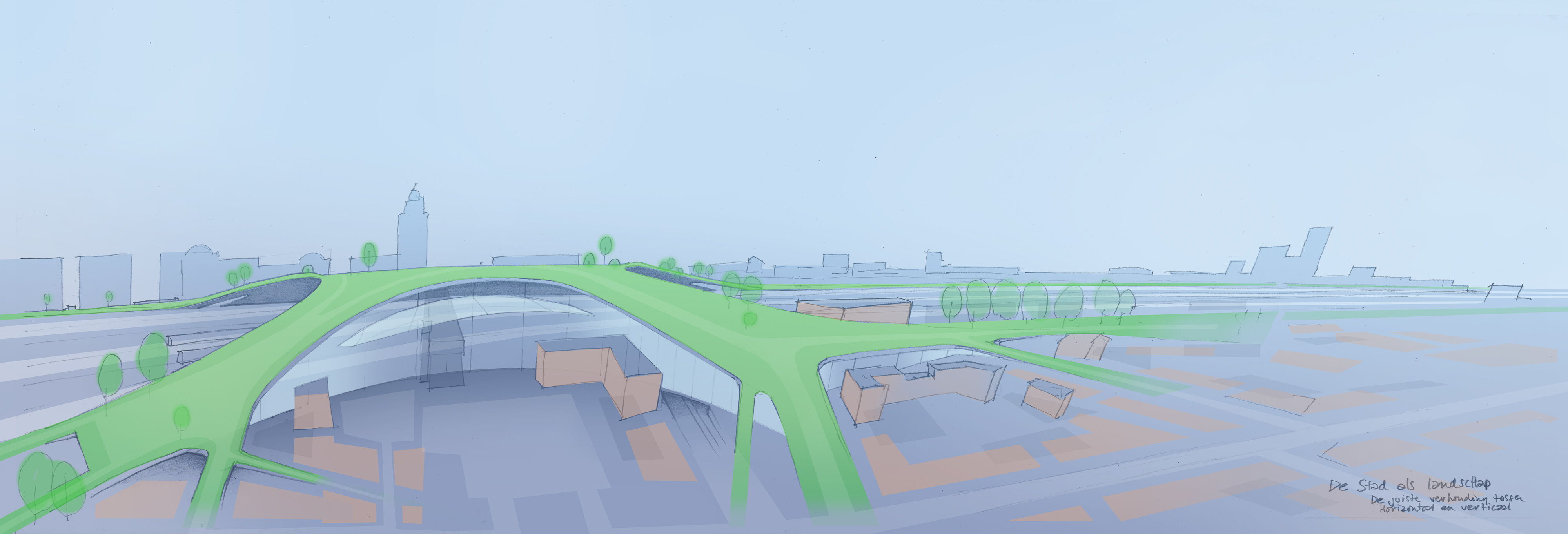 Los van een nieuw station is Den Bosch toe aan een gedegen verbinding over het spoor dat de stad nu doormidden snijdt. De opdracht was om een inspiratiedocument te maken om alle betrokken partijen: de gemeente, architecten, stedenbouwers, ontwikkelaars en Prorail te verleiden tot iets bijzonders. Ons antwoord op deze vraag is de gelaagde stad. Een kans om een nieuwe kathedraal te bouwen en Den Bosch op de kaart te zetten. In een essay en een maquette laten we zien hoe de verbinding in verschillende lagen over elkaar gerealiseerd kan worden. Uitgangspunt is: “Durf te dromen!”